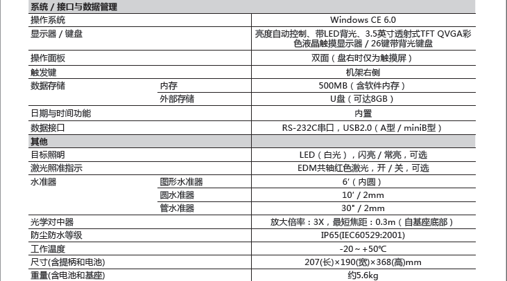 符合《測繪資質(zhì)分級標(biāo)準(zhǔn)規(guī)定(2014)》中“大地測量”及“工程測量”甲級認(rèn)證標(biāo)準(zhǔn)對高精度全站儀的要求。
